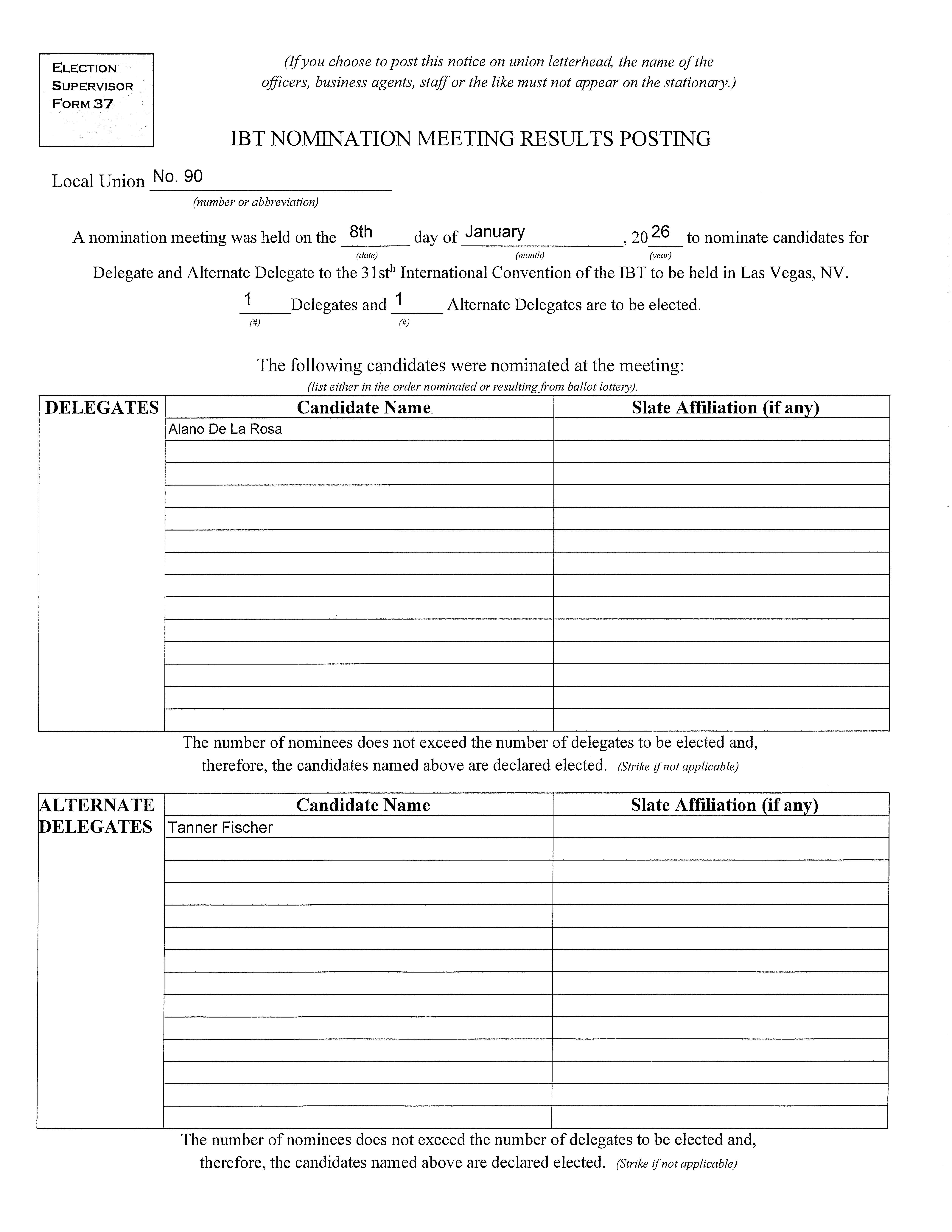 IBT Nomination Meeting Results
